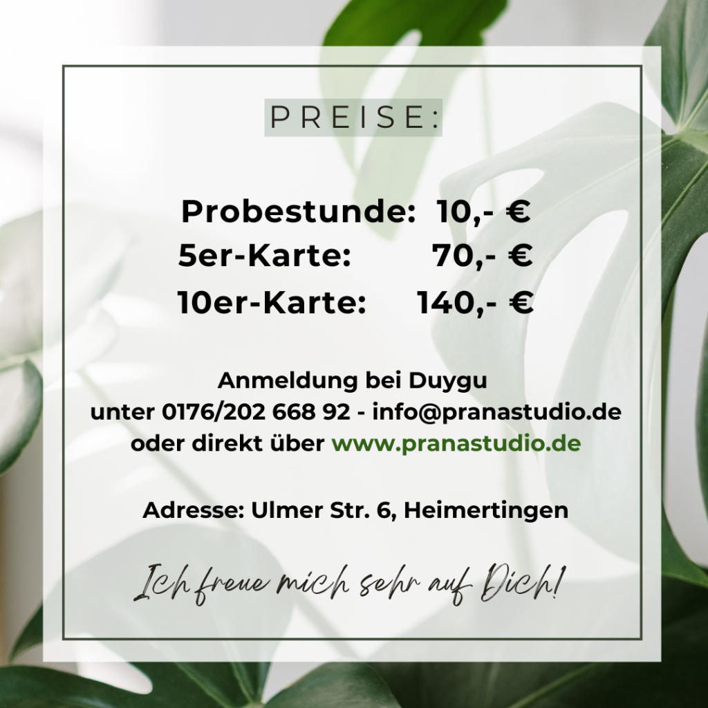 Stundenplan & Preise Für die Anmeldung an einer Yogastunde folge bitte dem Link: Teilnehmer-Anmeldung